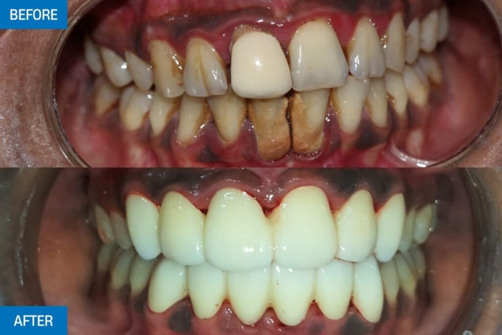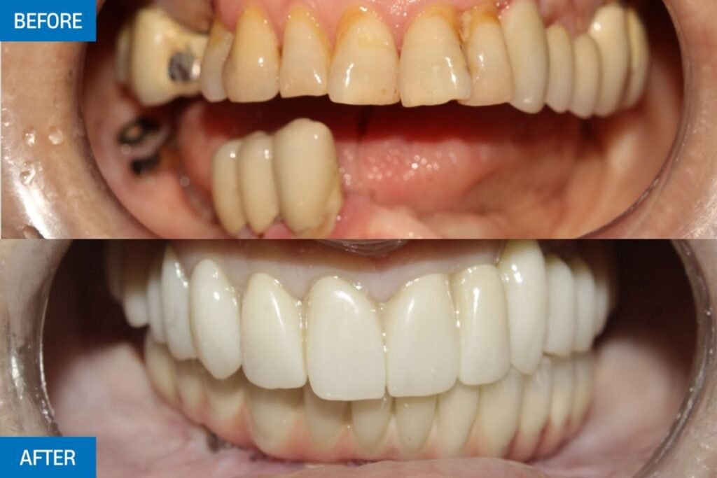 Full mouth rehabilitation before and after results at City Dental Hospital for international dental tourism patients.